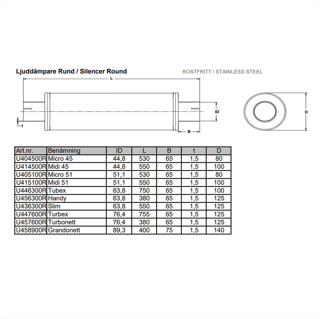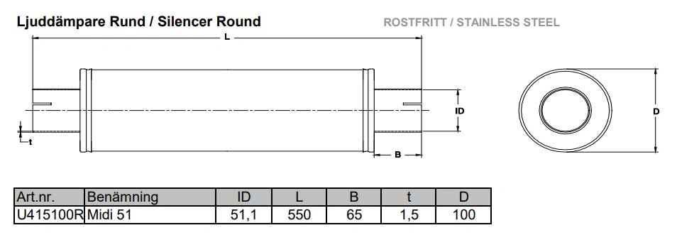 Muffler midi 2 inch SS
