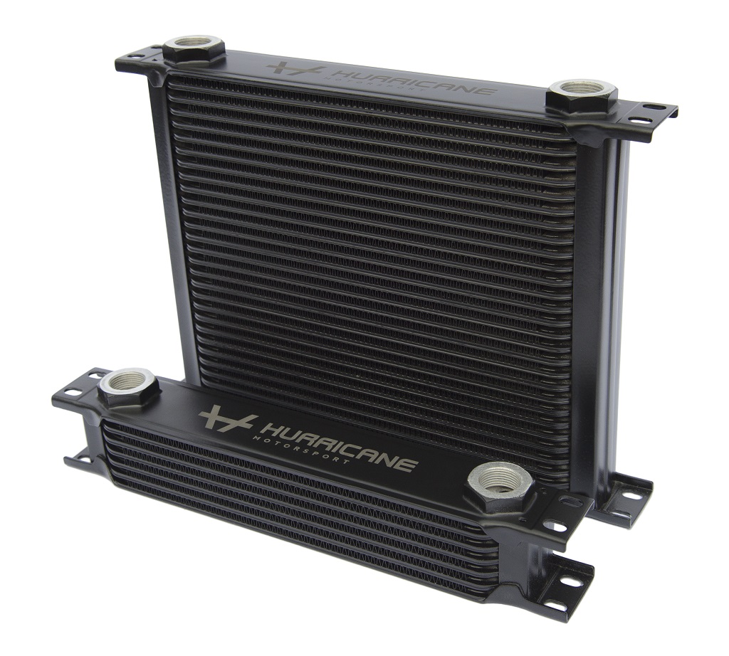 Black universal aluminum oil cooler from Hurricane motorsport.