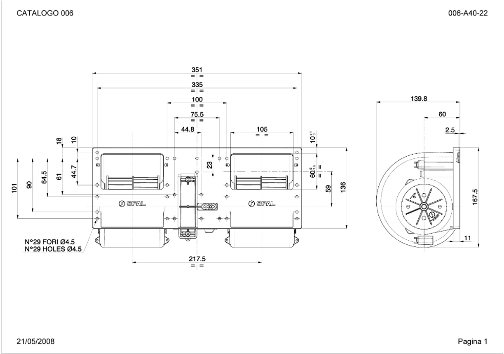 SPAL Podwójny wentylator promieniowy 1080 m³/h