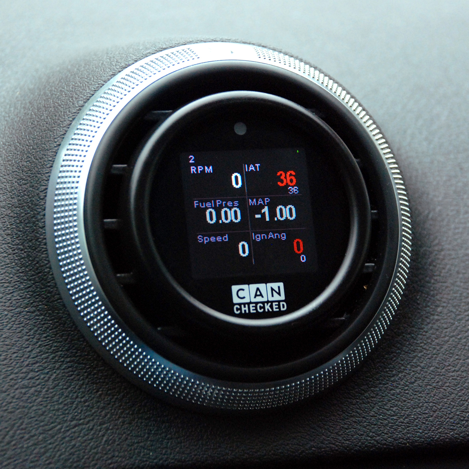 The vehicle-specific panel integrates seamlessly into the interior and is compatible with standard 52 mm displays and, of course, the MFD15 Gen1 and Gen2. the bezels are 3D-printed and are elaborately reworked to imitate the look and feel of the original ventilation louvres.